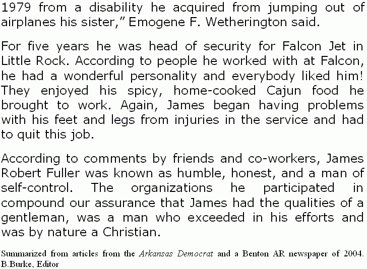 Fuller retired as a colonel with disability from the military in 1979 when his knees and legs