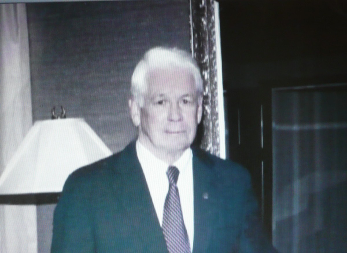 former U. S. Senator Lloyd Spencer, at First National Bank of Hope, where he