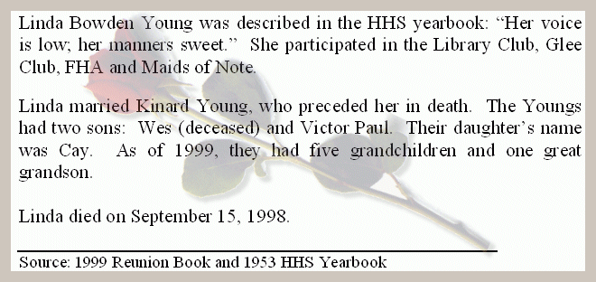 I miss Linda. We didn't see each other much after she married Kinard Young,