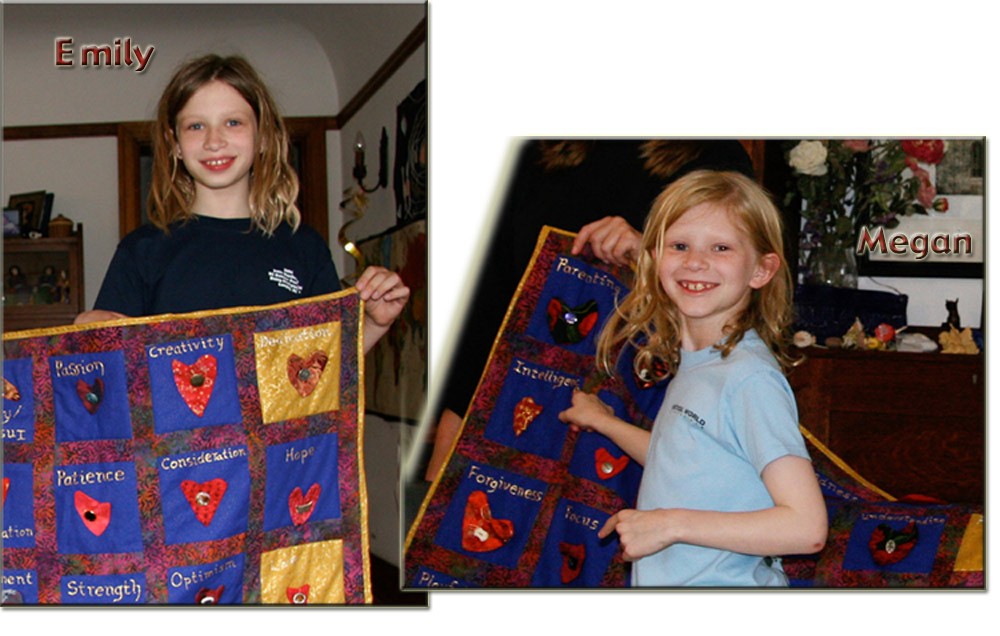 Emily and Megan made an anniversary quilt. Each square has a reason
