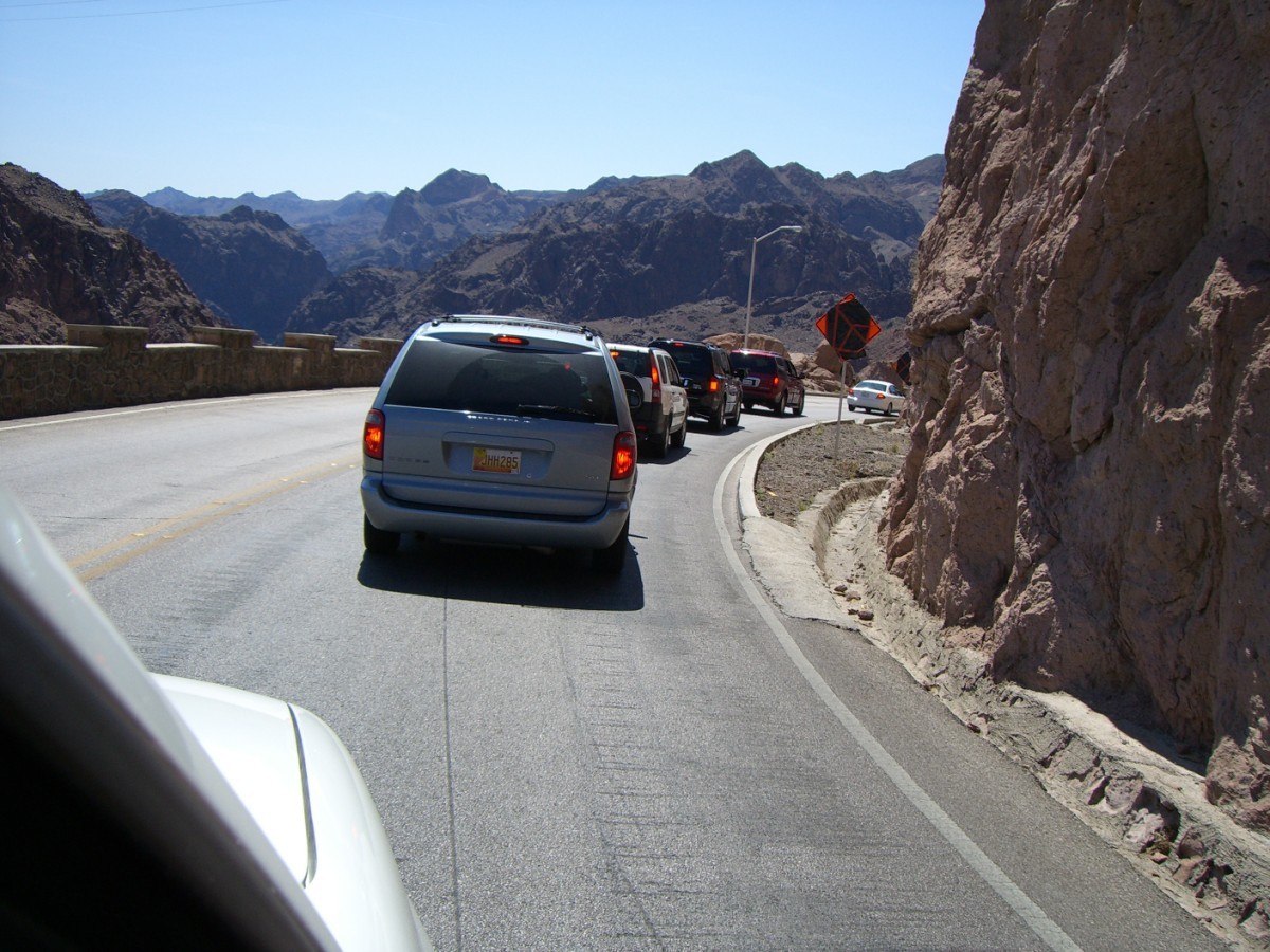 switchbacks leading to the Hoover Dam site and the restrictions at the dam